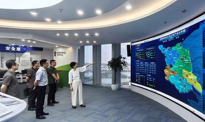 王伟一行还实地走访调研了国家电投江苏新能源集控中心。