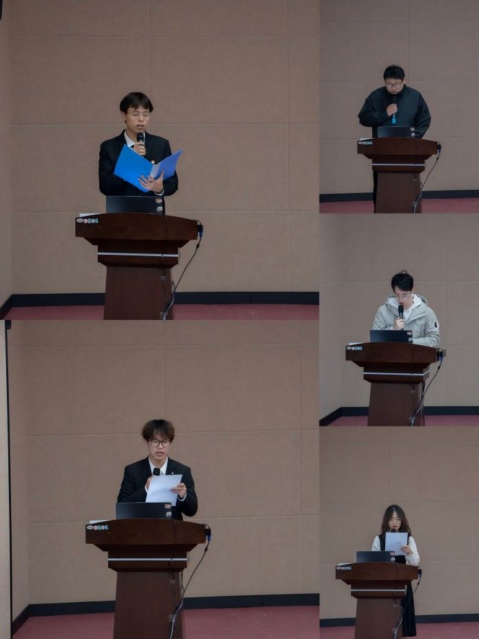 随后,各代表作工作总结及未来工作部署发言。研究生会副主席王鸿志率先发言,他分享了自己在学术和学生工作中的经验与感悟,强调了学团在促进学术交流、丰富校园生活方面的重要作用,鼓励大家积极参与学团活动,提升自身综合素质。第十七届学生会主席王申奥回顾过去一年学生会工作的同时,对新一届学团成员提出了新的希望:希望大家发挥好先锋模范作用,立足本职岗位解决好同学们的“烦心事”;传承学生会的优良传统,不断创新,为同学们提供更好的服务。第十八届学生会主席万俊凯阐述了自己的工作计划和目标,他表示将带领全体学生会成员,以更加饱满的热情和更高的工作标准,努力提升学生会的影响力和公信力,为同学们打造一个更加丰富多彩的校园生活。部长代表姜嘉程与志愿者代表王一杨表达了对未来学生会工作的信心和热情。