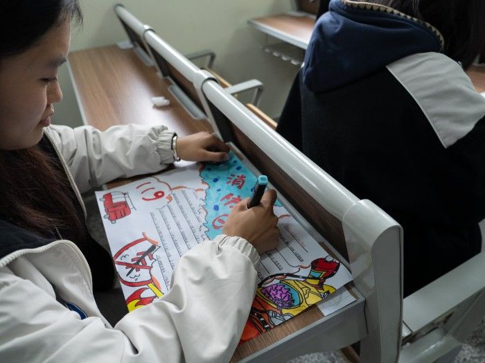 创作消防绘画作品,致敬“火焰蓝”。同学们笔下消防员的形象可以是戴上呼吸面罩后酷酷的样子、可以是面对火魔时的坚定眼神、也可以是默默逆行的背影。通过组织学生创作消防相关的绘画作品,引导他们向逆行的“火焰蓝”致敬。