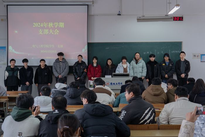 12月11日中午,在南校区博学楼B406教室,电气工程学院学生一支部召开党员大会。学院党委副书记江滔出席并指导工作。学院党委组织委员、学工办主任于晨颖,团委书记、支部纪检委员单曼曼,支部宣传委员冯程程,支部组织委员张朋蕴,本科生辅导员蔡飞、王怀鹏等24名正式党员、37名预备党员参加。活动由支部书记凌悦主持。