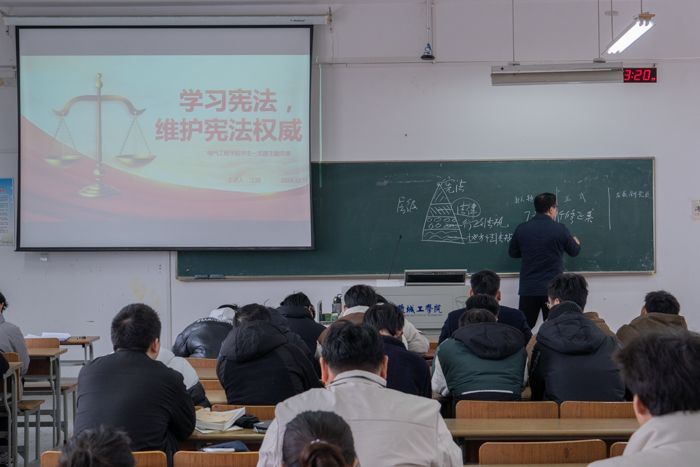 江滔要求全体师生党员,要深入学习习近平法治思想和习近平总书记关于宪法的重要论述,大力加强宪法学习宣传,营造浓厚的校园法治文化风尚,努力形成尊崇宪法、学习宪法、遵守宪法、维护宪法、运用宪法的良好氛围。