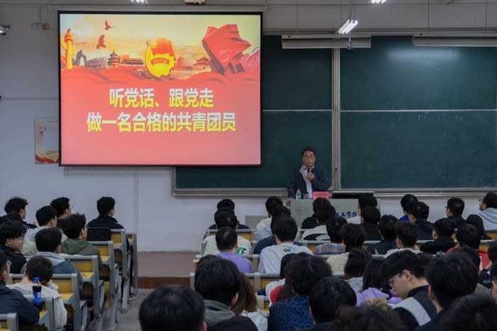 徐报喜回顾了中国共产党的百年历史,阐述了中国共产主义青年团的性质,介绍了入团入党的基本程序、要求和应当具备的条件。他指出,百年党史是中国共产党在革命、建设、改革进程中积累的核心精神财富,镌刻着无数共产党人的初心使命与奋斗足迹,百年党史同时也为新时代新征程注入源源不断的精神动能。他结合自身经历,分享了自己在在读期间如何创造条件加入党组织的经验体会,希望大家从百年党史中激发信仰,汲取力量,传承共产党人的血脉,勇敢追梦,努力前行,争取在大学期间,成为一名合格光荣的共青团员。