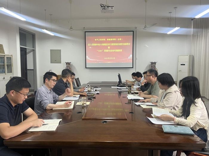 5月13日下午,在南校区怀德楼三楼会议室,电气工程学院党委开展2025年“510”思廉月活动专题教育。党委书记于建业主持,党委中心组成员参加。