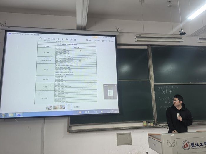 周星宇同学拟就职盐城三新供电服务有限公司,他以自身经历为蓝本,详细讲述了自己从萌生求职意向,到精心准备简历、投递岗位,再到最终成功入职的全过程。郇子毅、郝琳清两位同学分别从三新电网介绍、备考计划、面试注意事项三个方面来分享他们的经验。孙茗同学着重分享了面试环节的注意事项,从面试前的资料准备、形象塑造,到面试中的语言表达、问题回答,再到面试后的跟进反馈进行介绍,并现场模拟了面试场景,与同学们进行互动交流,让大家亲身体验面试的氛围和流程。