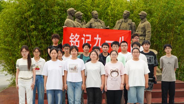 实践明志:铁军广场传承抗争精神。学生会实践部全体人员前往南校区铁军广场开展爱国实践活动。在庄严肃穆的氛围中,同学们通过向革命先辈致敬、集体默哀缅怀历史等环节,以躬身实践传递对历史记忆的集体坚守,生动诠释中华民族“不畏强暴、顽强抗争”精神的时代内涵。活动尾声,全体人员在“铭记九一八”横幅上郑重签下自己的名字。一笔一划间,是青年学子对历史的敬畏、对责任的承诺,更是对践行社会主义核心价值观的坚定决心。随后,大家在横幅前整齐列队、合影留念,定格下新时代青年传承红色基因、立志砥砺前行的庄重瞬间。