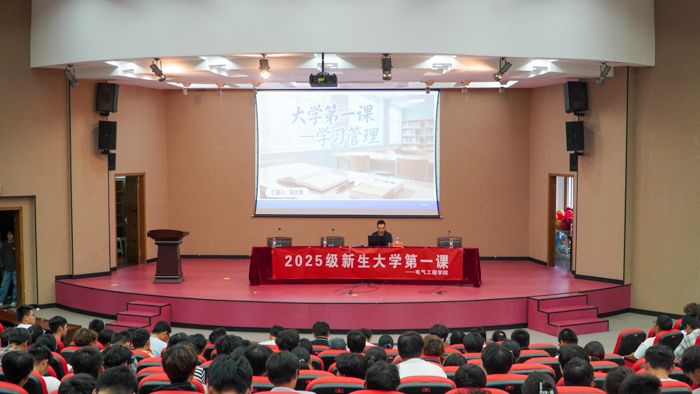 为做好2025级新生学习管理教育,助力新生明晰学业要求、规范学习行为。9月26号上午,在五四报告厅,电气工程学院联合“电翼护航”一站式学生社区,开展了2025级新生“大学第一课”之学习管理主题讲座,由电气工程学院副院长段文勇主讲。