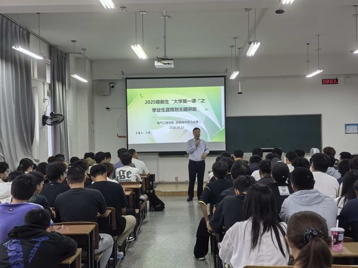 为帮助2025级学生摆脱学业迷茫,从“被动学习”转向“主动规划”,10月14日上午,电气工程学院联合“电翼护航”一站式学生社区,在博学楼D407举办新生“大学第一课”之学业生涯规划主题讲座。本次讲座由学院党委副书记江滔主讲。