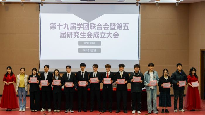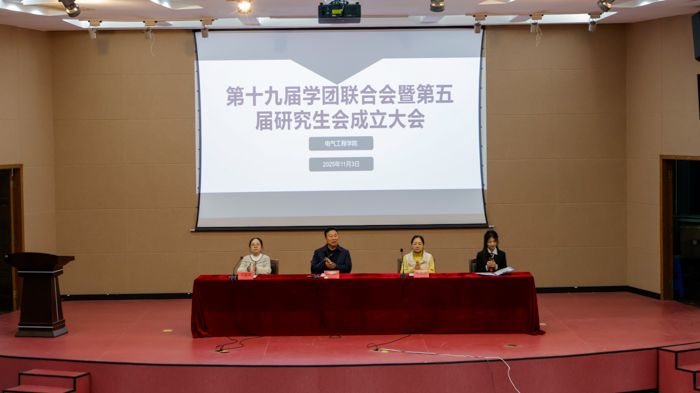 11月3日晚,电气工程学院联合“电翼护航”一站式学生社区,在北校区五四报告厅召开第十九届学团联合会暨第五届研究生会成立大会。学院党委副书记江滔出席。团委书记单曼曼、学工办主任于晨颖、全体本科生辅导员及200余名学生代表参加。