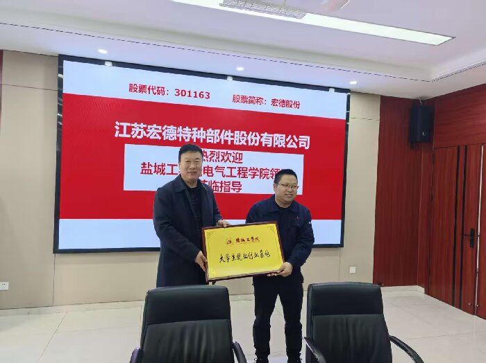 11月14日,电气工程学院院长阚加荣、党委副书记江滔,智能装备与系统专业系主任蒋善超、新能源科学与工程专业系主任王林、专职辅导员张馨月、凌悦等一行,在院长阚加荣带领下,赴江苏宏德特种部件股份有限公司开展“访企拓岗”活动。公司董事长杨金德、总经理许玉松、副总经理朱懂飞、人力资源部副部长孙晴晴、人事主管江宁等热情接待。
