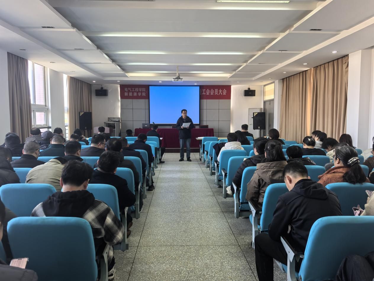 3月25日下午,在南校区怀德楼三楼报告厅,电气工程学院开展2026年春学期第二次教职工政治理论学习活动。本次学习内容为习近平总书记在《求是》杂志发表重要文章《学习好贯彻好党的二十届四中全会精神》《在中央城市工作会议上的讲话》等。学院党委书记于建业主持,60余名教职工参加。