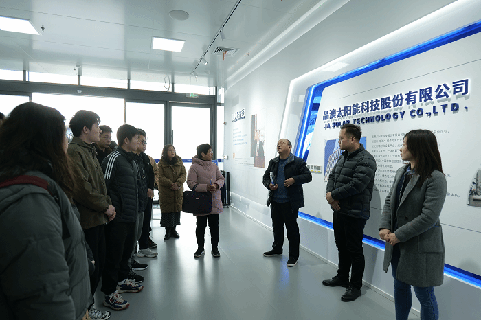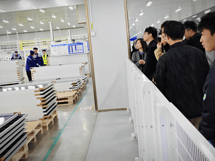 3月13日,在东台人社局的大力支持下,电气工程学院张兰红、白雪飞两位老师带领新能源科学与工程专业20级61位即将毕业的学生开展毕业实习。活动中,师生们先后到东台晶澳太阳能科技有限公司、领胜城科技(江苏)有限公司、天合光能(东台)科技有限公司以及中节能东台太阳能发电有限公司(风光渔基地)参观学习、毕业设计课题调研以及就业招聘等活动。