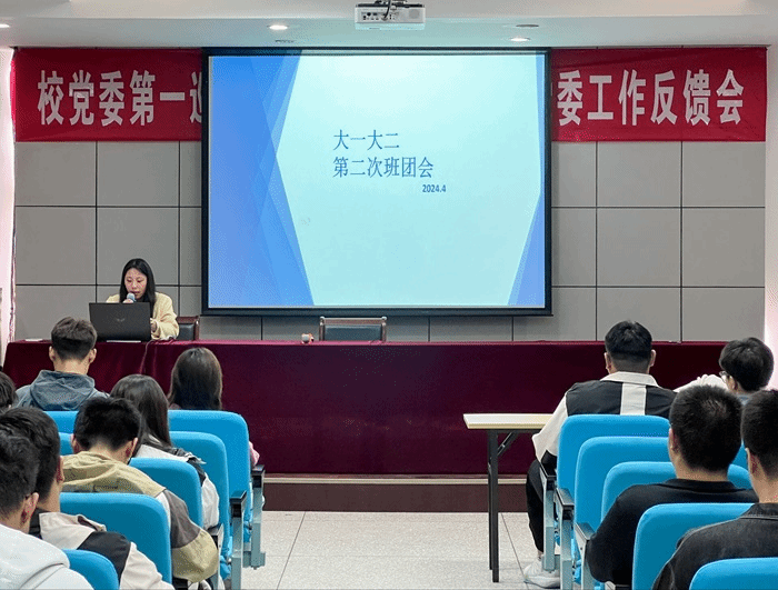 为加强学生干部队伍建设,有序推进各项学生工作,及时对各班学生工作做出总结,4月2日晚,电气工程学院于怀德楼报告厅召开2024年春学期第二次班团会。电气学院团委、学生会干部、各班班长与团支书参加,会议由权益维护部黄煜主持。