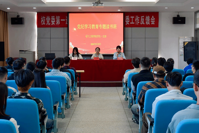 5月15日晚,在南校区怀德楼报告厅,电气工程学院学生第一党支部召开党纪学习教育专题读书班第一次学习会,会议由支部书记张馨月主持。