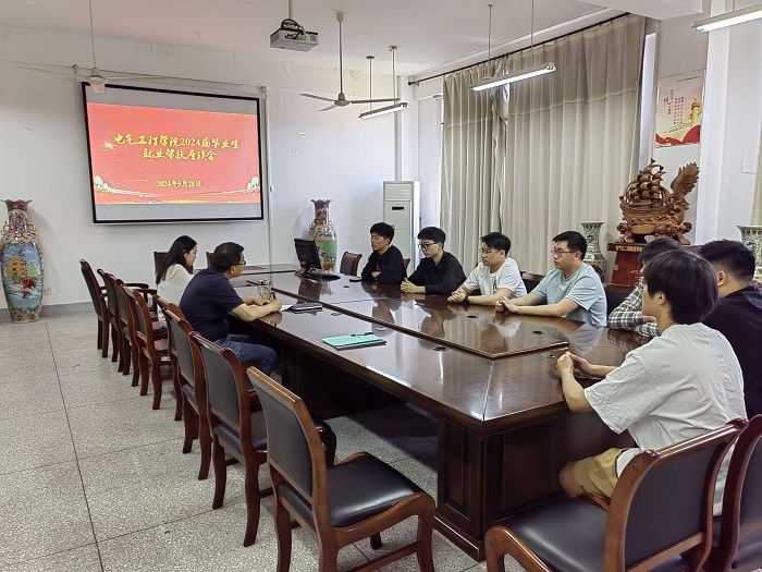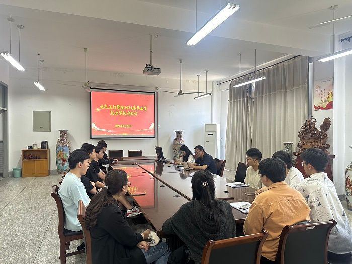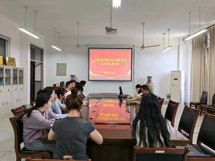 于晨颖主持会议并通报我院2024届毕业生就业工作开展情况,并从当前的经济形势、市场环境和人才培养等方面,为毕业生分析当前的就业形势和就业困难原因,介绍学院促进毕业生就业工作的具体措施。