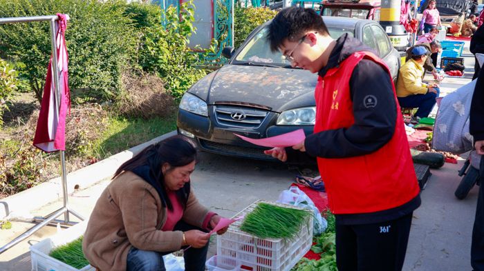 志愿者同学们走进社区菜市场,精准锁定商户群体开展反诈宣讲,他们聚焦“虚假订单诈骗”“冒充执法人员收费”“二维码盗刷”三类高频涉经营类诈骗,用案例拆解诈骗套路。为扩大宣传覆盖面,志愿者分为多个行动小组。各小组在组长带领下开展逐户走访,不仅为每户商户送上反诈宣传手册,还现场演示实用防护技巧,包括如何快速辨别虚假订单信息、怎样做好收款二维码的安全防护等,手把手帮助商户提升反诈能力。