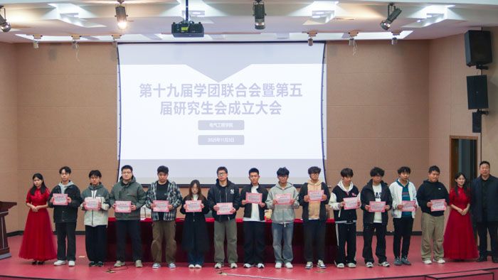 11月3日晚,电气工程学院联合“电翼护航”一站式学生社区,在北校区五四报告厅召开第十九届学团联合会暨第五届研究生会成立大会。学院党委副书记江滔出席。团委书记单曼曼、学工办主任于晨颖、全体本科生辅导员及200余名学生代表参加。